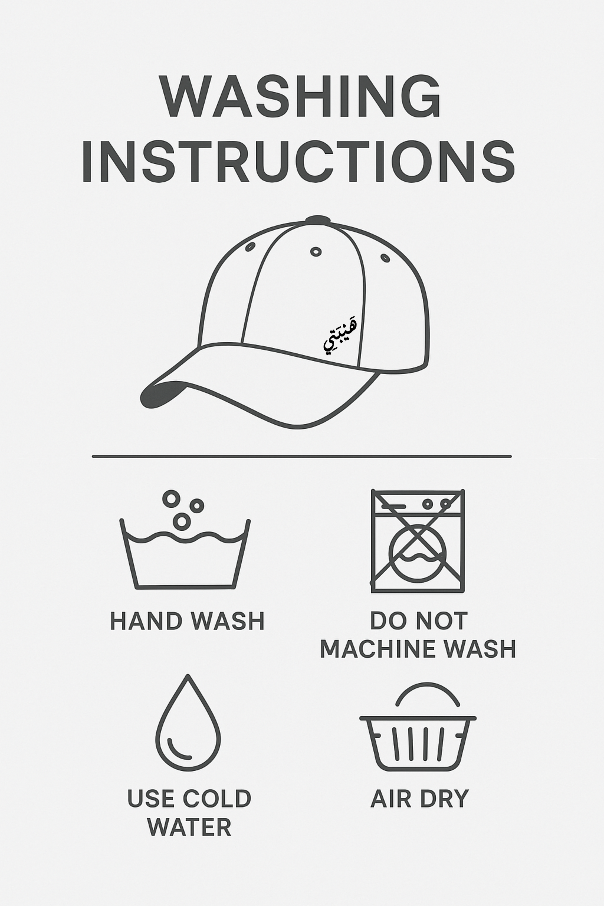 • ❌ Don’t use a washing machine → it can bend the brim or shrink the cap.